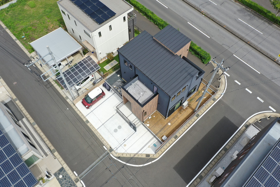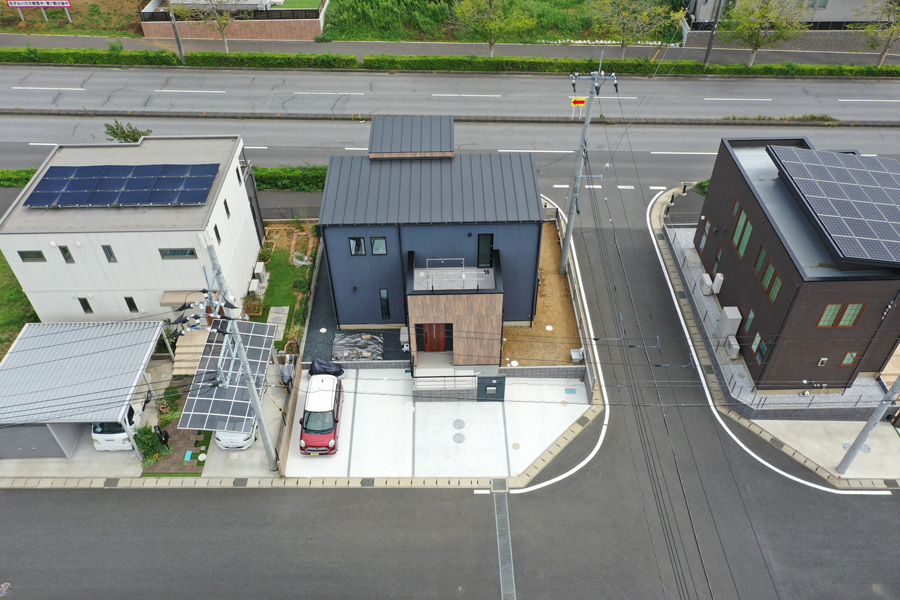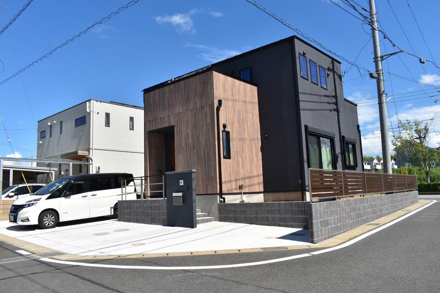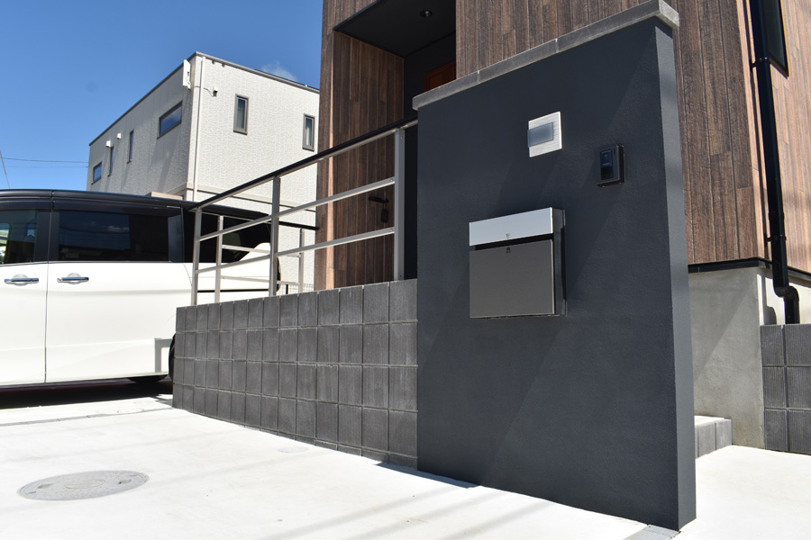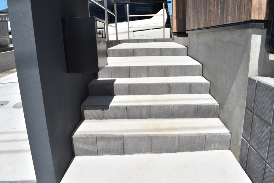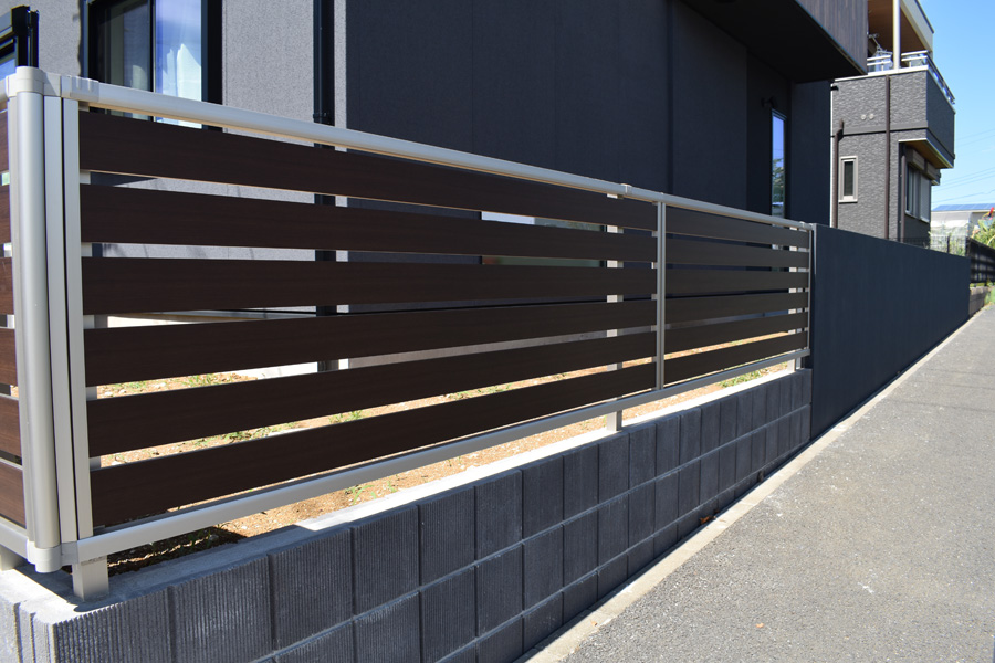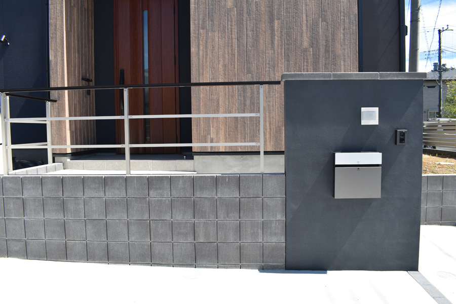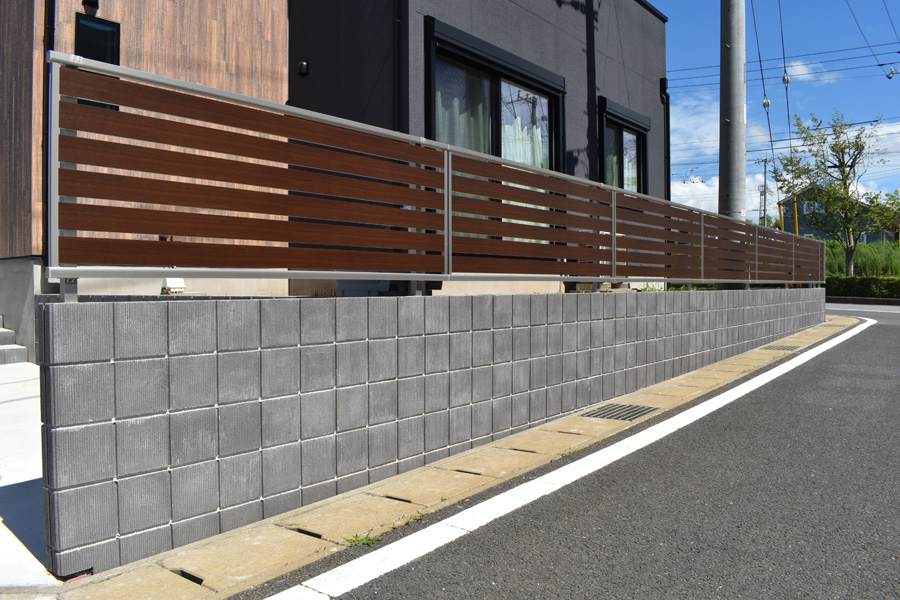 お客様のご要望に応え、色はグレーベースに統一したことで、住宅との色合いがマッチし、シックな仕上がりとなりました。また、住宅と同じように木目調のフェンスや手すりを使うことで、木の温かみを感じられるエクステリアに仕上がりました。