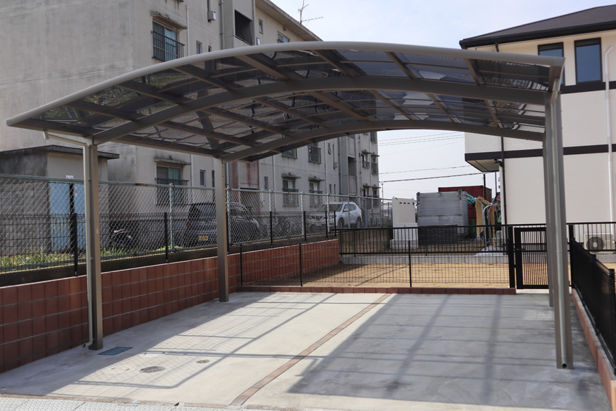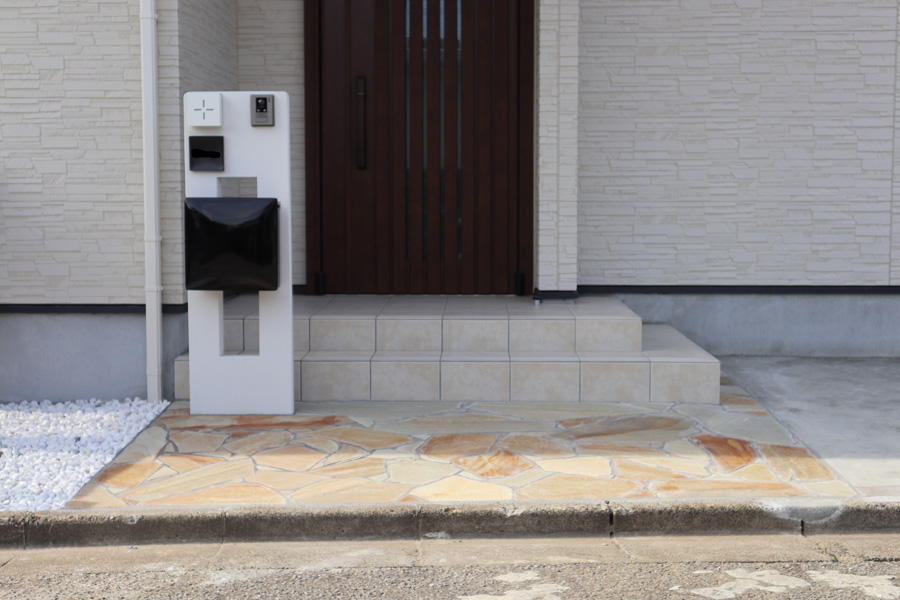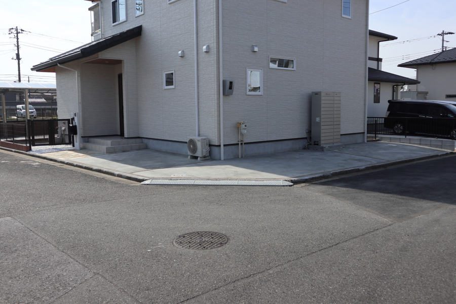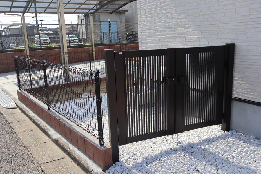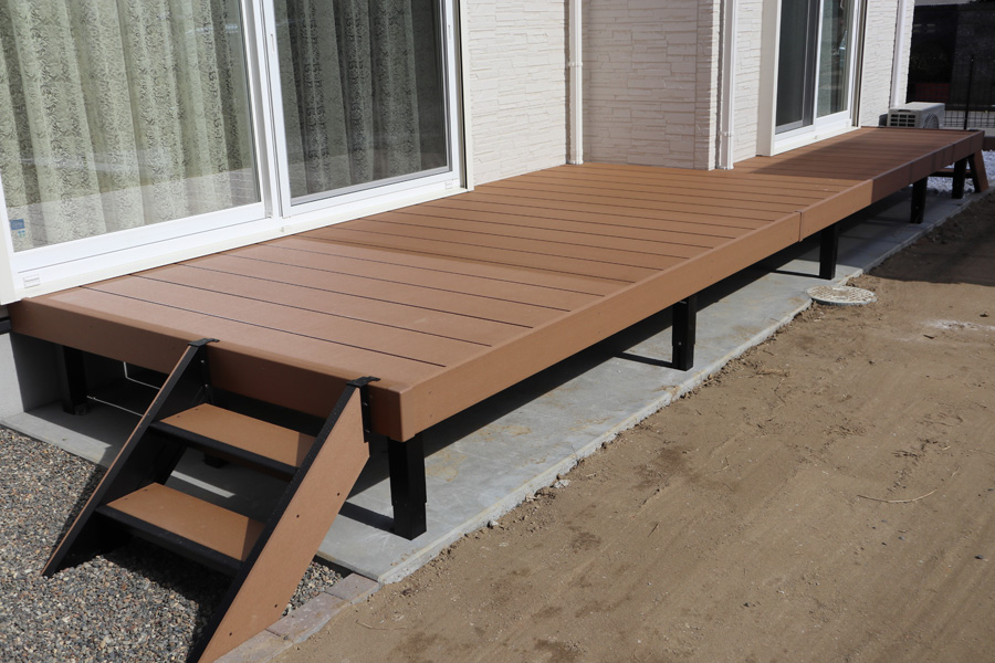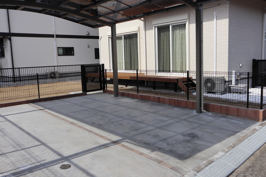 子供たちはのびのびと遊べるお庭が欲しいとのご要望にお応えして、外構工事に入らせて頂きました。外出先から、お庭に向かうことが出来るように玄関近くにも扉を設置しました。また、疲れた時は休めるように日当たりのよい場所にウッドデッキを設置させて頂きました。
