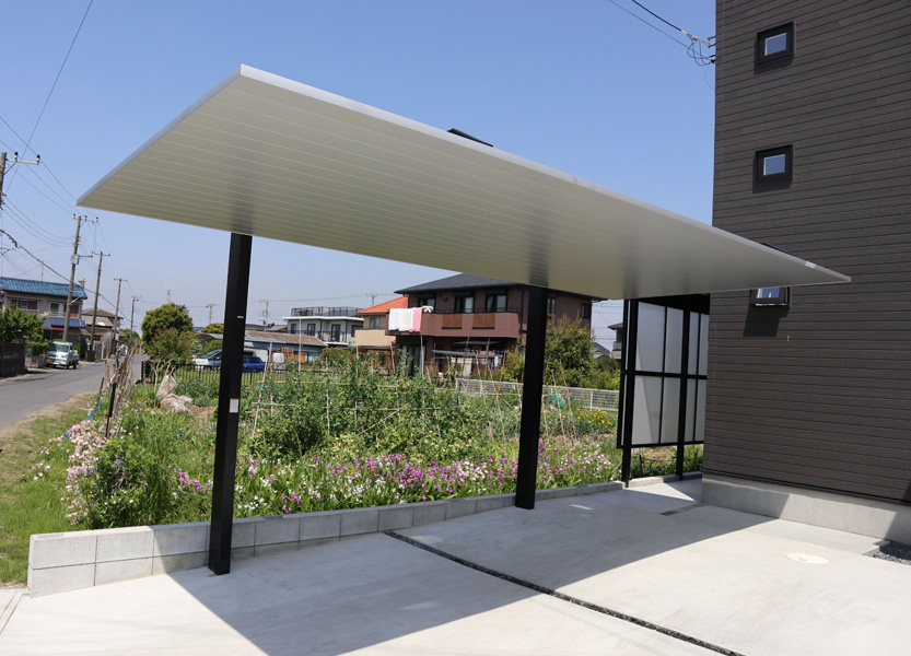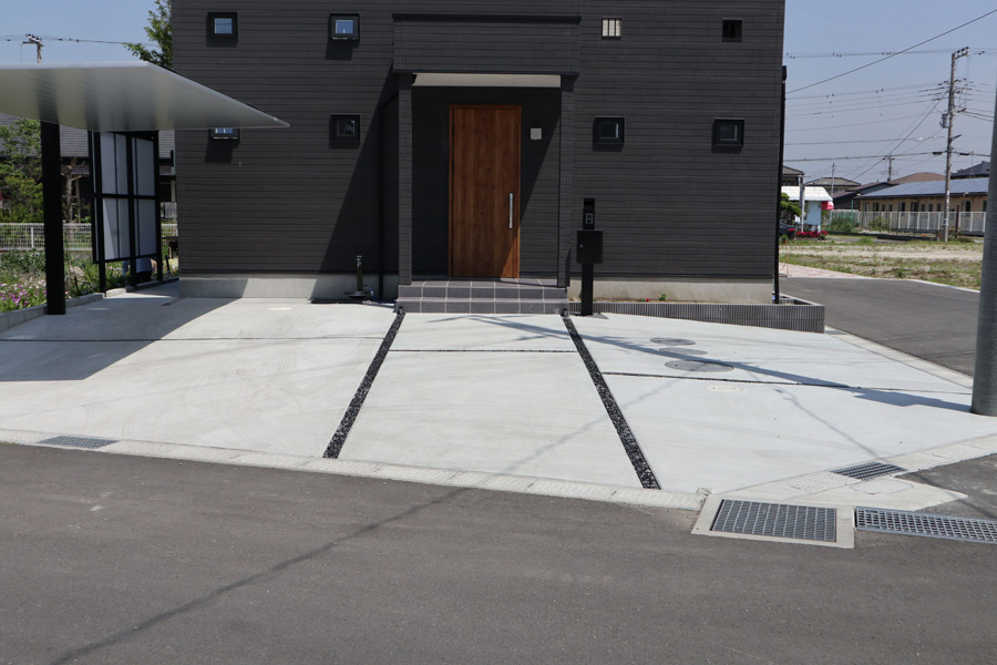お客様からのご要望にお応えして、シンプルながらも実用性のある統一されたエクステリアをご提案させて頂きました。駐車場を広くとることで、車の出入りもスムーズにすることが出来ました。