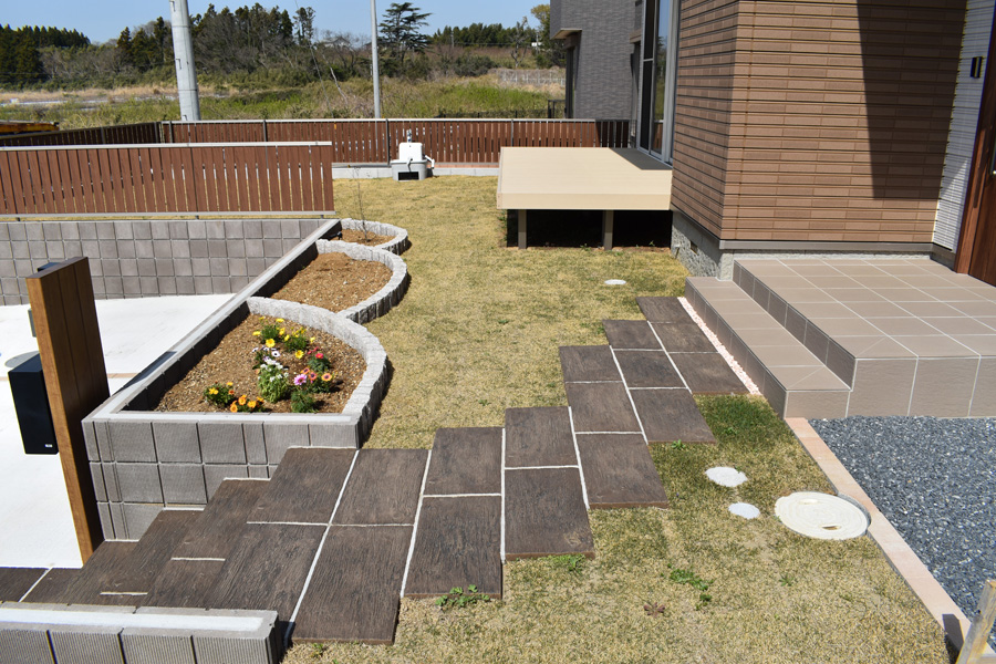 お客様はプライベートな空間を大事にしたいとのことでしたので、目隠しフェンスでお庭の周りを囲うことしました。また、窓の外にウッドデッキを設置し、いつでもお庭へと出られる施工になっております。